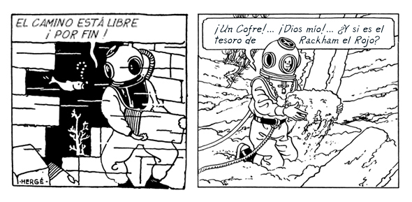 Estamos a 10 de enero de 1929, en Bruselas. Acompañado de su perro Milú, un jovencísimo reportero se sube a un tren con destino a Moscú. Para Tintín es el comienzo de una gran aventura. Para Hergé, el auténtico comienzo de su carrera. Las aventuras de Tintín, reportero de Le Petit Vingtième en el país de los soviets, aparecen en forma de álbum en 1930. Ese año marca el nacimiento de un mito que no deja de crecer, y los primeros signos de un turbador parecido entre la ficción y la realidad. Un ejemplar de la primera edición de 1930 vale hoy en día una pequeña fortuna. ¡La aventura no se reeditó en álbum hasta 1973! Y hubo que esperar hasta 1981 para ver aparecer una edición facsímil destinada al gran público. Casterman dudó mucho antes de reeditar esta obra que, aunque histórica, estaba también estrechamente vinculada a una época muy concreta y era prácticamente desconocida para los lectores jóvenes. El lector de Tintín en el país de los soviets puede descubrir en el álbum escenas que Hergé desarrollará más adelante en otras aventuras. Fíjate, por ejemplo, en estas dos viñetas y observa la evolución del estilo del autor entre Tintín en el país de los soviets y El tesoro de Rackham el Rojo: